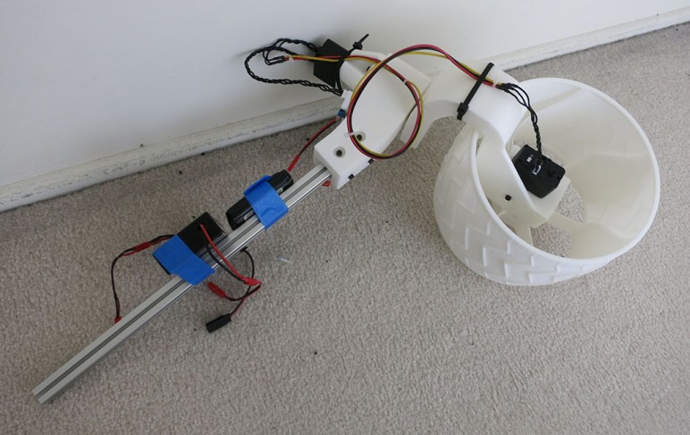 And once the basic mechanical pieces were proven to work, servo motors were installed to test how it all moves. Reading servo spec sheet is one thing, actually seeing it move in person and feeling the actuator forces should be quite a confidence builder. Or it would be, if the servos had any traction.