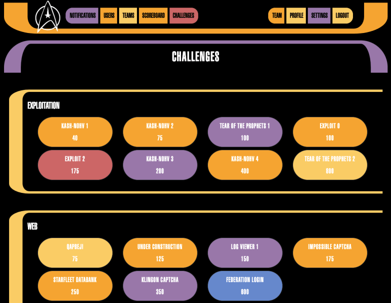 While it is possible to just have a list of computer skill challenges in a CTF, organizers usually put in a little more effort to build around a theme. This year’s LayerOne CTF was about Star Trek. From the narratives presented as clues in many challenges, down to the LCARS style user interface of the main site. While we didn’t get very far in our CTF attempt, I appreciate the effort of organizers to engage beginners. Perhaps we’ll be better equipped the next time we come across one.
