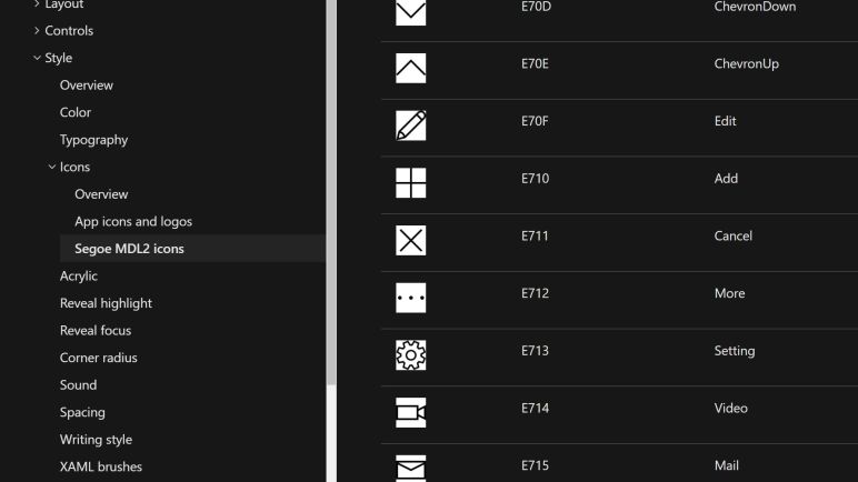 Times have moved on, and so have typefaces and iconography. For their UWP application platform, Microsoft provided an accompanying resource for Fluent Design icons called Segoe MDL2. And again, I had a lot of fun scrolling through that page to see my options.