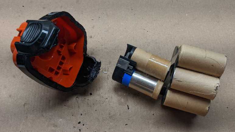 Annoyingly, those two final wedges were still strong enough to hold all batteries in place! I had to carefully cut away one wedge before I could dislodge the entire pack of cells.