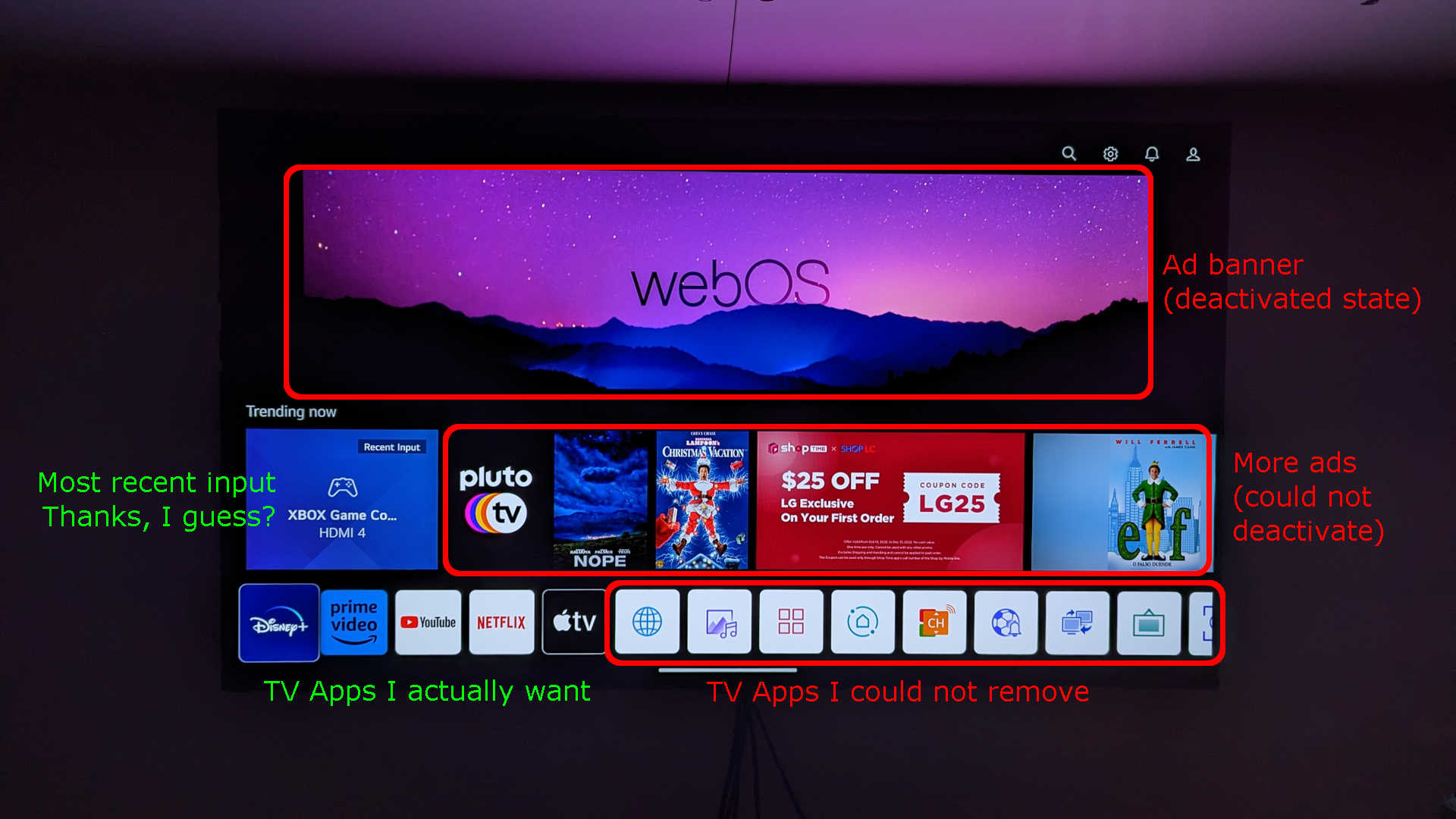 lg webos home screen is full of ads