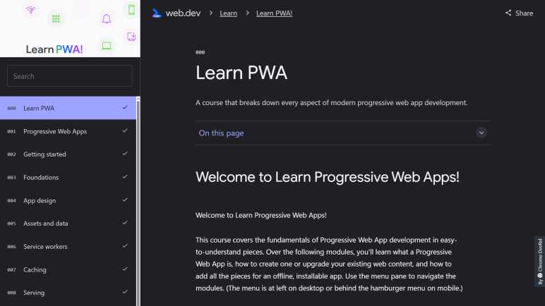From this “Learn PWA!” guide I’ve learned that PWAs start with a relatively simple core set of features (caching and network call interception) but can get very complex very quickly for ambitious developers who want to advanced features. Going hand-in-hand with that power is the potential for things to go very, very wrong. The one that made me grimace is the fact a misbehaving service worker could intercept F5 (refresh) preventing us from loading updated code. Aack! There’s a lot to learn beyond this guide. The web.dev team offers a six-part hands-on PWA training course to supplement this guide, and of course there are other websites out there with additional resources.