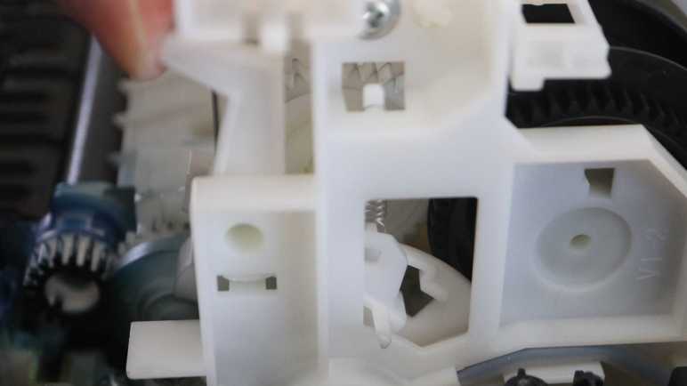 Here is a closeup of the paper handling mechanism at the base of the paper tray.