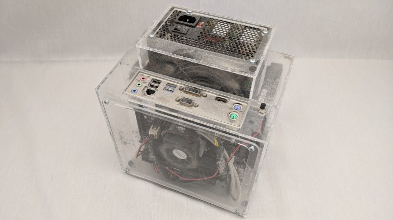 There were a few minor smudgest of dust whose origins are a mystery. Two up top near the PSU fan, and one on the bottom at the rear end of the PSU. I’m curious what they were, but their fine dust particle size implies they were not a significant factor, so I’m content to leave them as mysteries for now. Maybe they’ll make sense for me in the future once I learn more about designing for airflow. In order to preserve this information (all this dust will be disturbed and cleaned up when I disassemble this box) I shot a video for future reference: