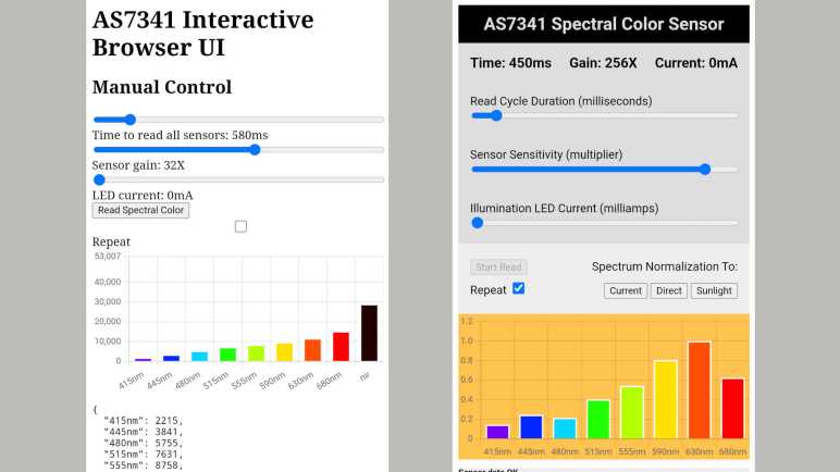 When developing my AS7341 web app, I had the AS7341 accessible via a HTTP GET on my ESP32 and thought I could develop the HTML interface on my desktop machine. But when my desktop-served JavaScript tried to query my ESP32, I was blocked by browser CORS policy. By default, JavaScript served from one server (my desktop) is not allowed to query resources on another (my ESP32.)