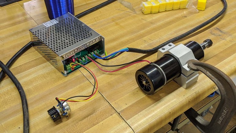 Once some convenience accessories are in hand, we return to the main business of cutting material. Our biggest unknown at this point is our spindle’s maximum speed measured in revolutions per minute (RPM). This is a critical part of calculating the “speeds and feeds” of machining. Yes, we’re cutting MDF which will be relatively forgiving, but the point of learning is to practice doing it right.