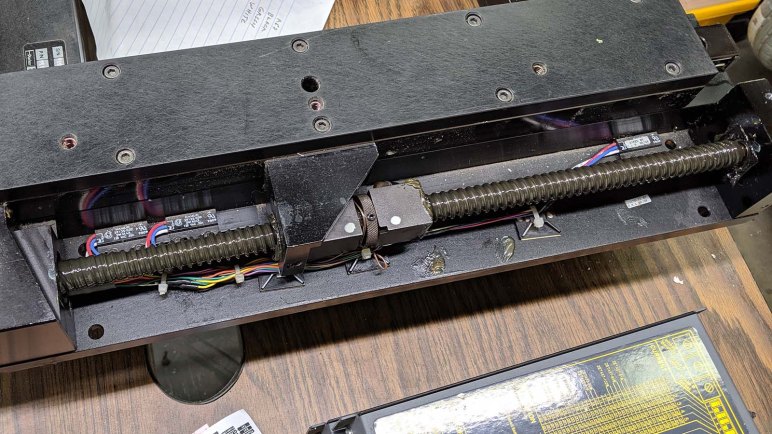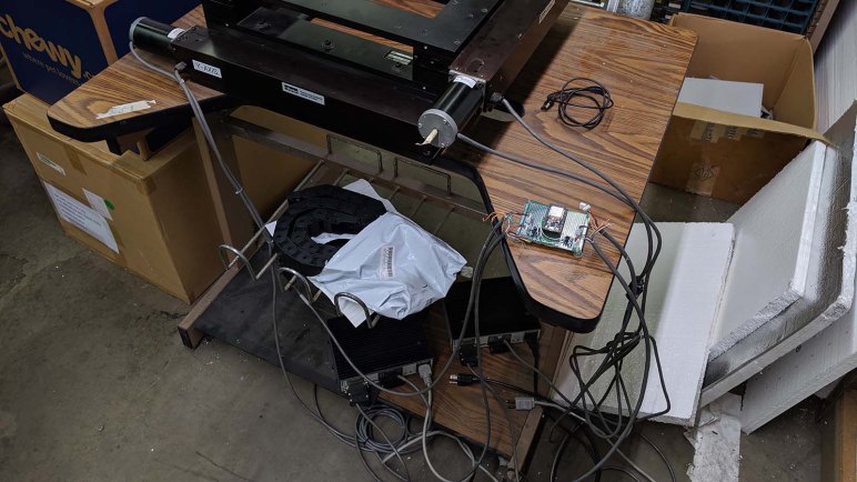 While fun, this “let’s act like a crappy Z-axis” game is not the point of the project. We know we need some sort of structure to fasten a Z-axis mechanism to. We hunted around the workshop for items collecting dust and found a set of 40mm x 40mm aluminum extrusion beams along with associated hardware. Formerly some sort of display for trade shows, it has been retired and available for use.