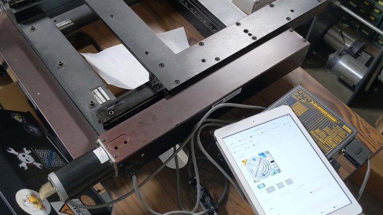 Having a computer running UGS proved useful because we now have a 3D visualization of G-code tool path. It allowed us to see where a particular program declared its origin, so we could set work coordinate zero accordingly. It also allowed us to debug a few problems with the G-code we’ve randomly found online. The smiley face, for example, issued a G54 command early in the program but Grbl didn’t like that upon rerun and demanded a G0 before it.