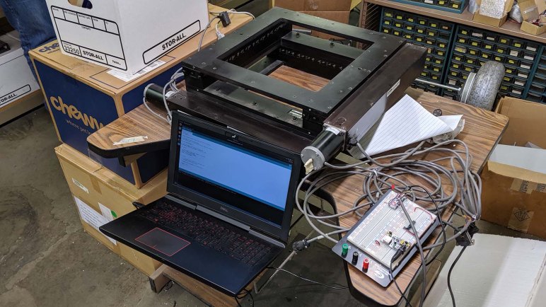 In an effort to put a salvaged industrial XY table back to work, the Arduino AccelStepper was used as a quick test to see if the motors and controllers still respond to input signals. Things moved, which is a good sign, but the high precision of the Parker ZETA4 controller demanded step pulses at a far higher frequency than what AccelStepper could deliver.